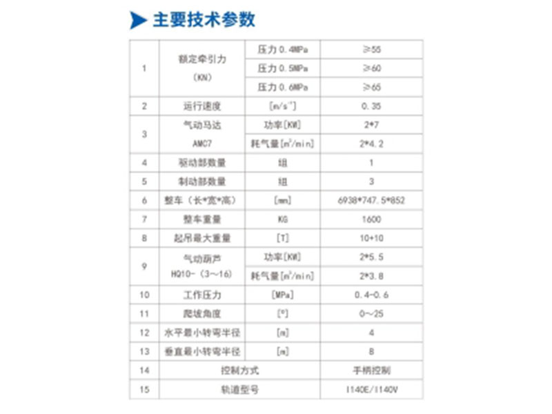承載小車(chē)、連接裝置、氣動(dòng)葫蘆*2(10噸)等。