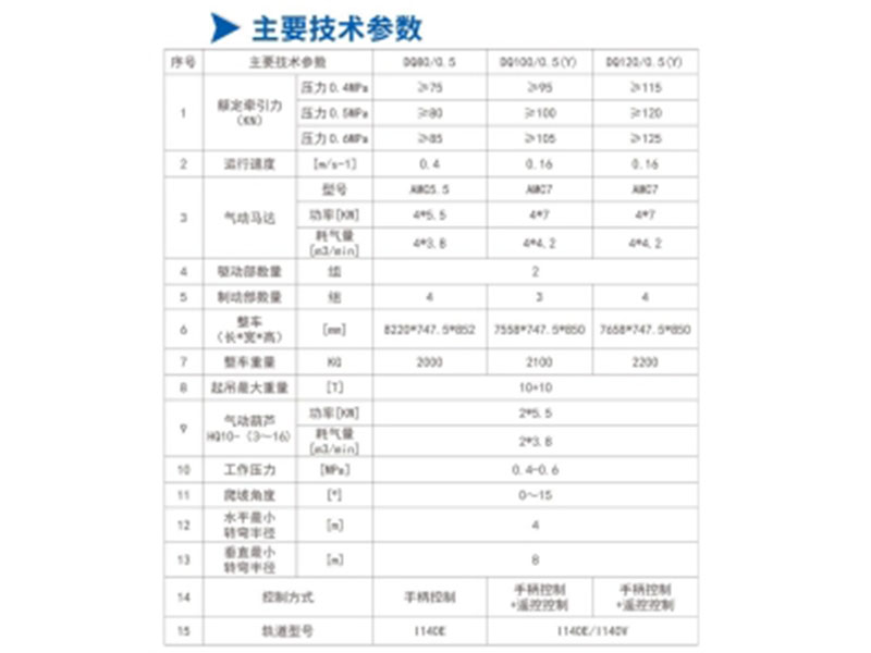 • DQ80/0.5、DQ100/0.5(Y)、DQ120/0.5(Y)型氣動(dòng)單軌吊車